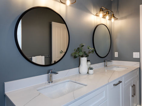 This 1,500 sq. ft. renovation focused on reworking the kitchen and ensuite to create a more open, connected layout for a busy family. Walls were removed to improve flow and encourage everyday connection, while new flooring throughout added warmth and cohesion. The design blends elegance and comfort with practical touches-like hidden towel storage to keep counters clear-resulting in a timeless, bright, and functional home.
