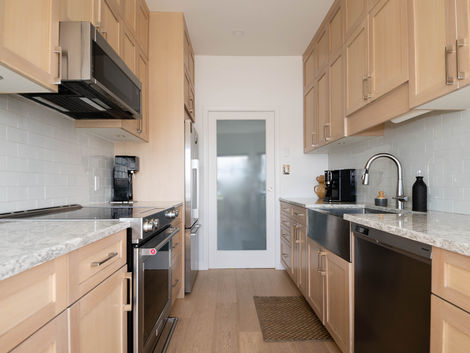 This 1,850 sq. ft. apartment renovation focused on creating a sense of ease and openness throughout. By enclosing a half wall to add a proper entry with a closet, and widening the kitchen-to-living room opening, the space now feels more connected and comfortable to move through. Curbless showers in both bathrooms add a refined, accessible touch, while the overall design is calm, timeless, and welcoming.